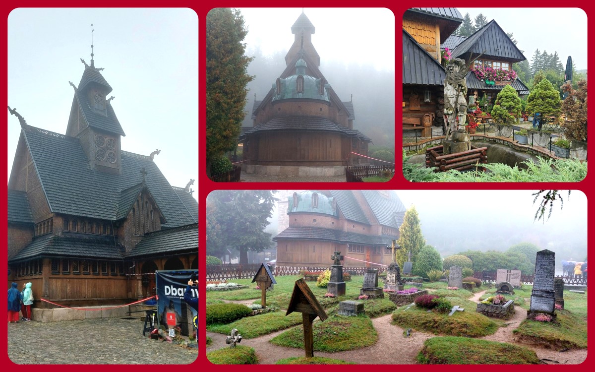 Am 5. Tag war das spätsommerliche Wetter leider vorbei und bei der Rundfahrt ins Riesengebirge war die Schneekoppe, die höchste Erhebung mit 1603,2 m, leider wolkenverhangen. Über ihren Gipfel verläuft die Staatsgrenze zwischen Tschechien und Polen. Sehr sehenswert war in Krummhübel nach einem kleinen Bergaufstieg die 1842 aus Norwegen transportierte Stabholzkirche Wang. Durch malerische Ortschaften und einem Rundgang durch Hirschberg endete dieser schöne Tag.