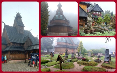 Am 5. Tag war das spätsommerliche Wetter leider vorbei und bei der Rundfahrt ins Riesengebirge war die Schneekoppe, die höchste Erhebung mit 1603,2 m, leider wolkenverhangen. Über ihren Gipfel verläuft die Staatsgrenze zwischen Tschechien und Polen. Sehr sehenswert war in Krummhübel nach einem kleinen Bergaufstieg die 1842 aus Norwegen transportierte Stabholzkirche Wang. Durch malerische Ortschaften und einem Rundgang durch Hirschberg endete dieser schöne Tag.