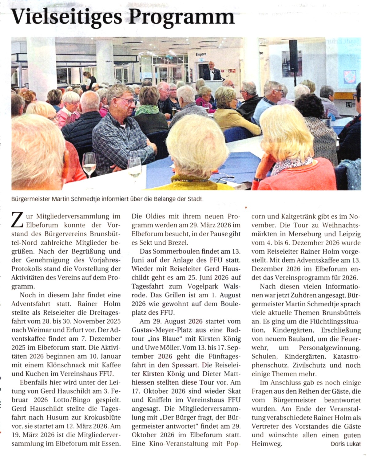 Mit dem Adventskaffee am 13. Dezember im Elbeforum endet das Vereinsprogramm für 2026.